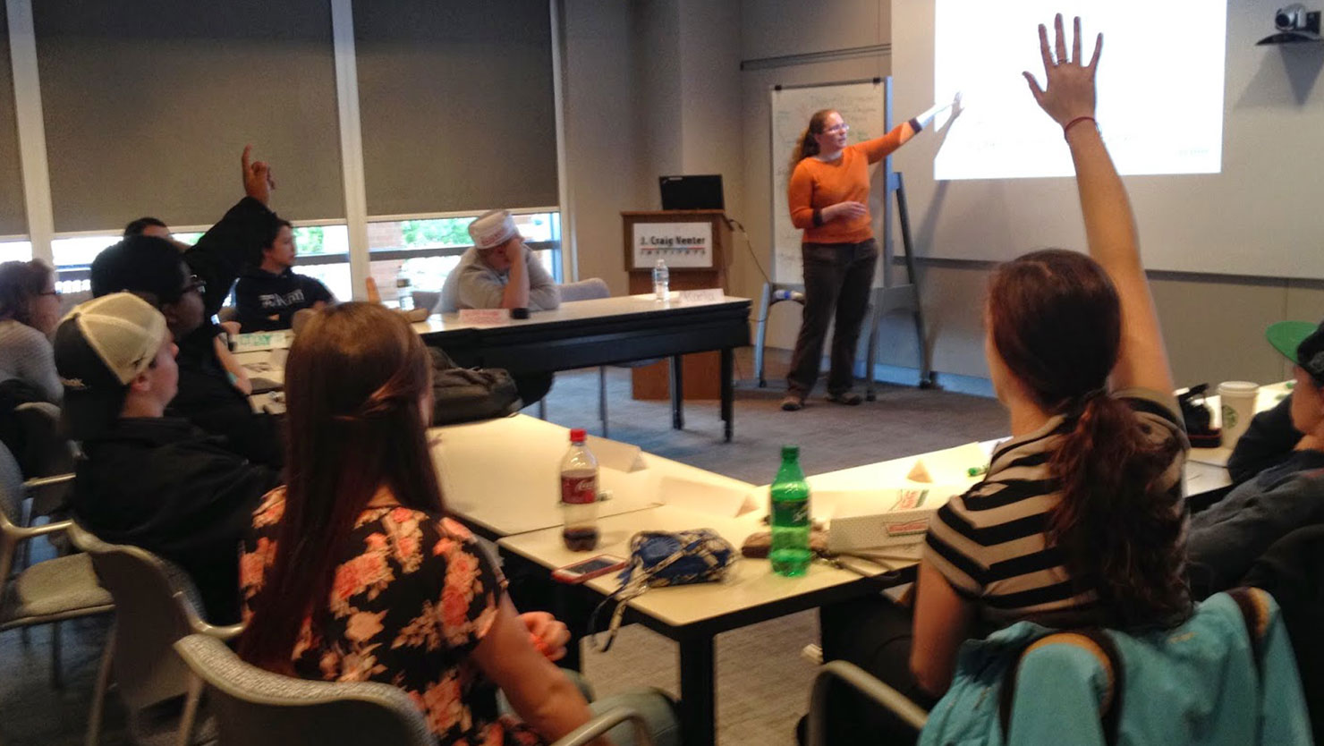 On Wednesday, March 11, 2015, ten high school students and two teachers visited JCVI to learn about molecular biology techniques and animal forensics. Their activities were coordinated by Dr. Karla Stucker, a Postdoctoral Fellow in the Virology Group at JCVI, and included a review of DNA structure and replication, a tour of the Institute, lessons about PCR and gel electrophoresis techniques, hands-on laboratory exercises, and a discussion about animal forensics with case examples. Dr. Suchismita Chandran, a Postdoctoral Fellow in the Synthetic Biology Group at JCVI, assisted with the laboratory exercises.