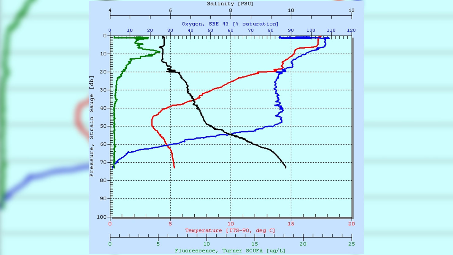 Here, at Landsort deep, we did not have to worry about hitting the bottom with the CTD but rather wanted to go as deep as possible to try and find the oxygen minimum and get a sample from there. Just below 70 meters, oxygen levels were down to almost 0 and we decided to collect water for our deep sample right there.