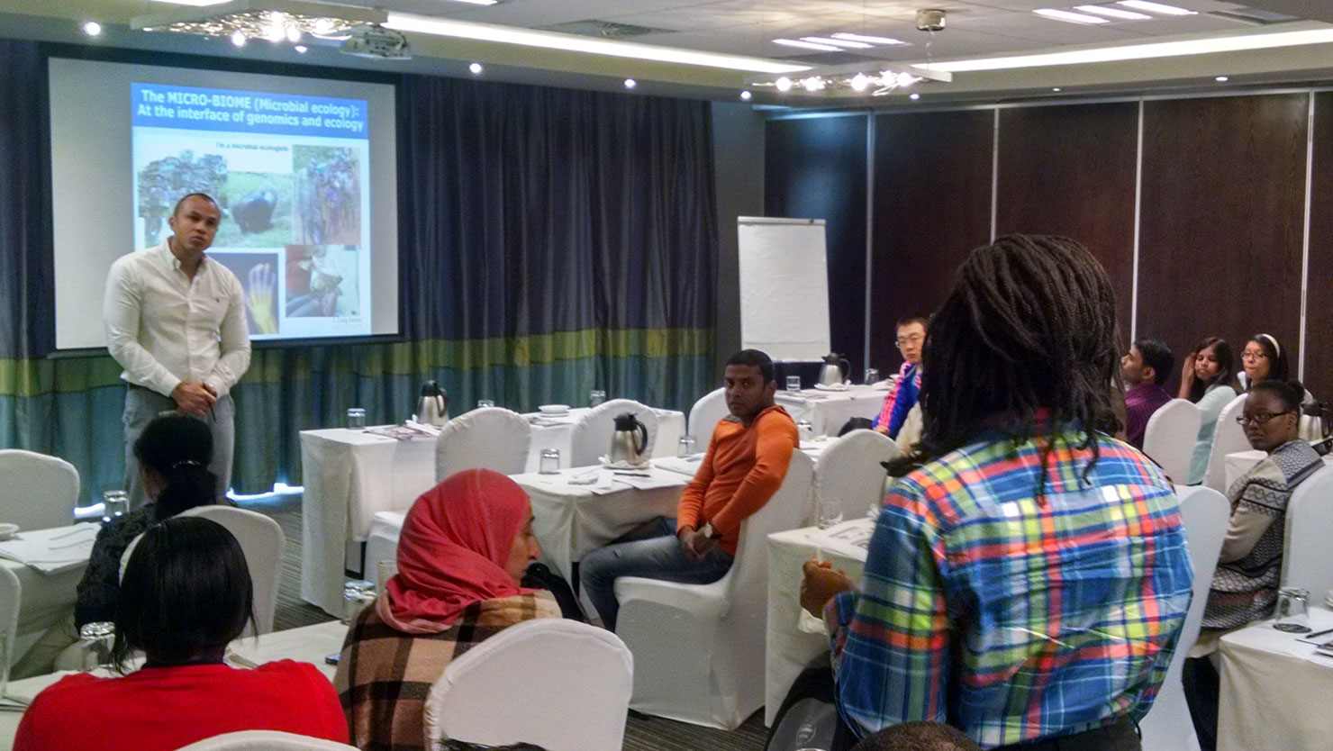 As part of our continued effort to bring genomics to other communities, Alex Voorhies, Derek Harkins and Andres Gomez traveled to Durban, South Africa to lead a series of workshops on microbiome data analyses. The two days of presentations were made to students, postdocs and faculty at the Durban University of Technology, and was co-sponsored by the NIAID funded JCVI Genomic Center for Infectious Disease. On day one, the JCVI team provided an introductory lecture on microbiomes and technical considerations to plan and conduct microbiome related projects. The lecture followed up with an introduction to sequencing technologies and bioinformatics tools to analyze 16S rRNA next generation sequencing data. The day one session ended up with a lecture on the differences between metagenomics and 16S rRNA sequencing and analyses pipelines and one on one advising with students and faculty on how to analyze and plan their own projects.