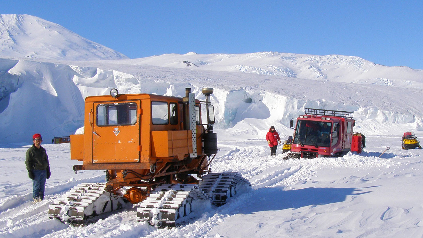 It took another day for the storm to blow itself out, but by Tuesday the wind and driving snow had abated, and we drove our Pisten Bully back out to our temporary shelter near Cape Evans. It took several hours of digging to clear the snow away from our vehicles, but once we started driving away from the hut we quickly ran into another problem: the snow was so