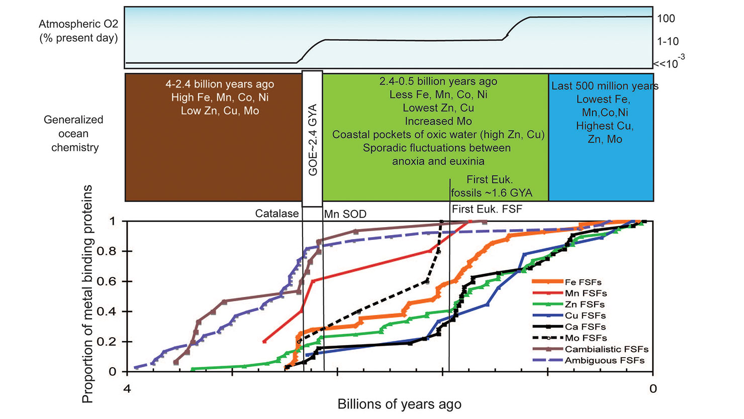 On May 12th and 13th, the J. Craig Venter Institute in San Diego will be hosting a NASA Astrobiology Institute-funded symposium titled “Paleobiology in the genomics era.” Paleobiology is the study of the origins and evolution of life and, by nature, is interdisciplinary. The goal is to bring together scientists united by this common interest but differentiated by expertise. A major intellectual challenge to paleobiology is the close interaction between environment and life. As life evolved, it changed the environment and suffered the consequences. One of the most extreme examples is the invention of oxygenic photosynthesis by blue-green algae cyanobacteria; the sunlight-fueled production of dramatically changed the availability of crucial elements of life, like nitrogen, sulfur, iron, zinc, copper, and other trace metals. Genome-based analyses showed that these environmental changes modulated the emergence of metal-requiring proteins. For example, proteins that bind Fe evolved when the earth was Fe rich. Essentially, one biological event changed the environment, which in turn induced a subsequent biological change; a feedback cycle between biota and planet.
