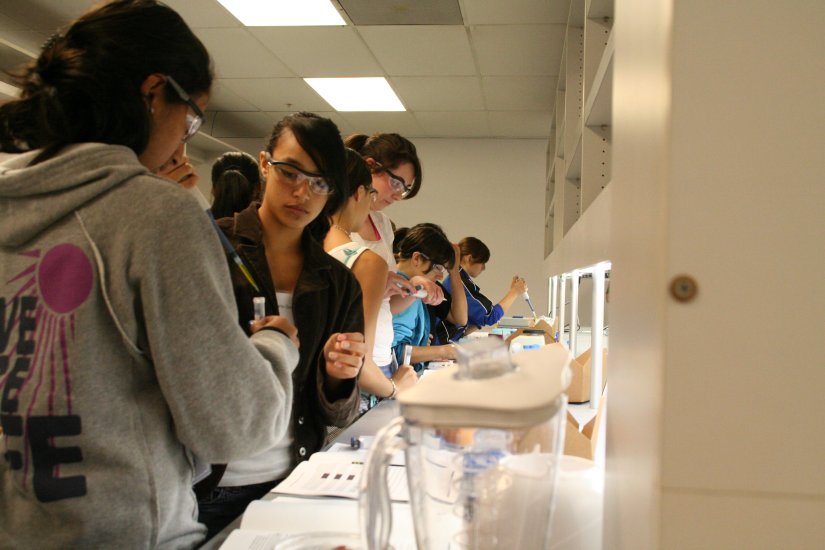 While Crystal was busy at USD, Orianna Bretschger, Shino Ishii, Angela Wu, Eric Son and I hosted 16 young ladies from BEWiSE. Our day started early too at 9:00, running through 2:30. We learned about genomics, microbial fuel cells and waste water treatment. In the labs, the girls mastered pipetting and DNA extraction culminating with DNA isolation from the Winograsky columns. The day ended with setting up PCR of the DNA isolates. It was like riding a lab train.