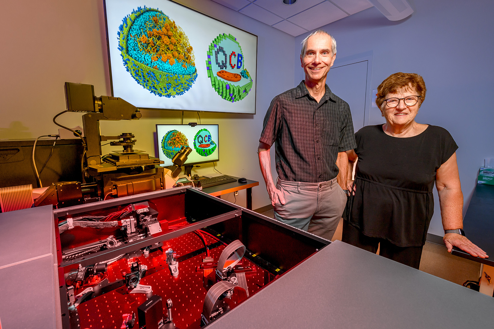 Because of the university’s unique confluence of researchers in cell biology, cellular biophysics, chemistry, biomolecule structure and dynamics, super-resolution imaging, and more, Luthey-Schulten and Gruebele’s collaborators are affiliated with 10 campus departments and research institutes including the National Center for Supercomputing Applications and the Carl R. Woese Institute for Genomic Biology. External partners include the University of Maryland, Baltimore County, University of Texas at Rio Grande Valley, and Fisk University, which are all minority-serving institutions; the KTH Royal Institute of Technology; Stockholm University; Harvard Medical School; EMBL Heidelberg; the University of Groningen; the J. Craig Venter Institute; NVIDIA; and Abberior Instruments.
