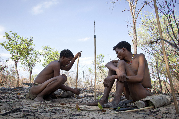 Ju/'hoan hunters setting a trap. Photo courtesy Chris Bennett.